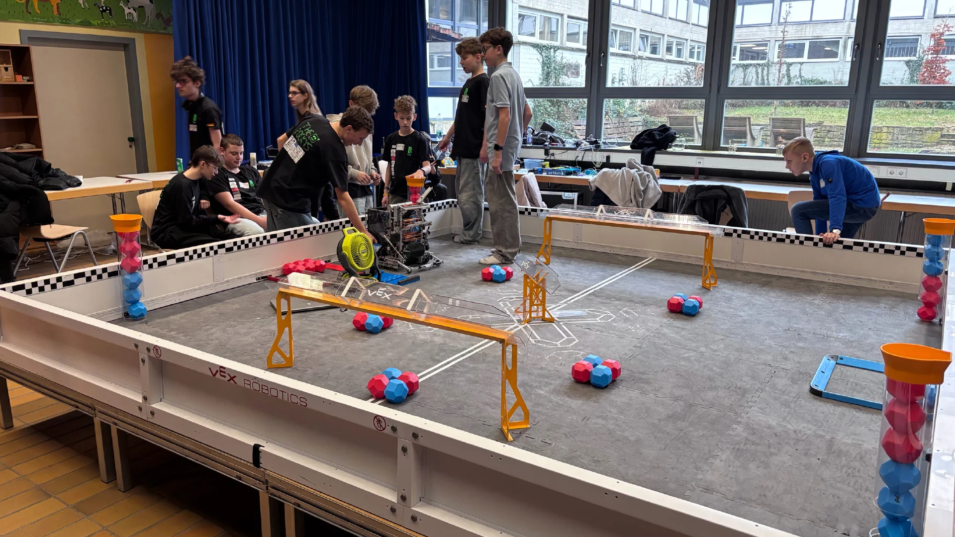 Nach den VexV5RC Worlds 2025 im Mai, den größten Weltmeisterschaften in Robotik, standen die letzten Monate für die Rockys unter dem Motto „Reset“ für die neue Saison „Push Back“ – aus zwei Teams wurde eins. Das Highschool Team mit Sebastian Gasior und Jakob Bachmann wurde durch Jolina Buhrmann, Bartek Ciolek und Tobias Graf, dem letztjährige Middleschool Team, ergänzt.
